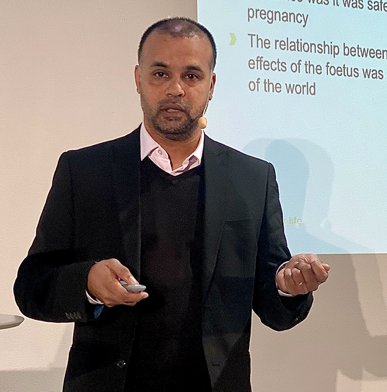 Från Storbritannien kom professor Raja Mukherjee, psykiater och grundare av den enda specialistkliniken i Storbritannien som även utreder vuxna med FASD. Raja Mukherjee delade med sig av erfarenheter och lärdomar som vi i Sverige kan dra nytta av, bland annat för att ge personer med FASD bättre tillgång till utredning och diagnosticering.